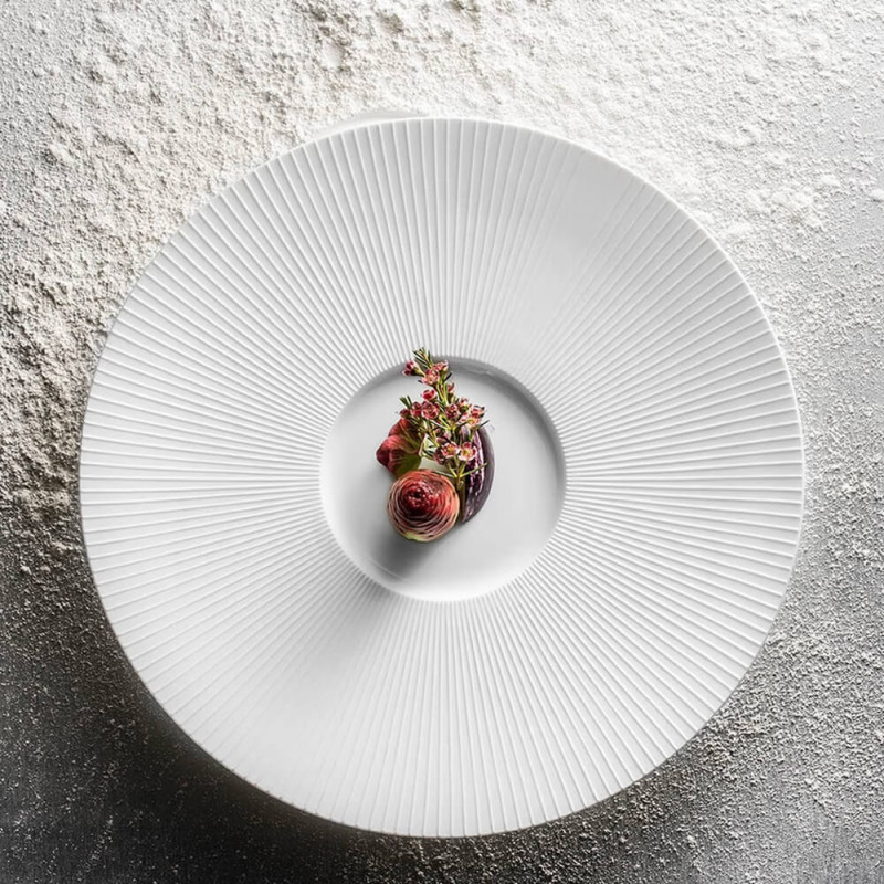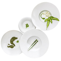 The Bolero collection by Jaune de Chrome and Jl Coquet takes you on a timeless journey, combining elegance and sophistication. Crafted from Limoges porcelain, this 29 cm flat plate is adorned with delicate engravings that add a radiant dimension to its design. Fired at 1400°C, the porcelain offers exceptional resistance to high temperatures, making it perfect for refined everyday use.