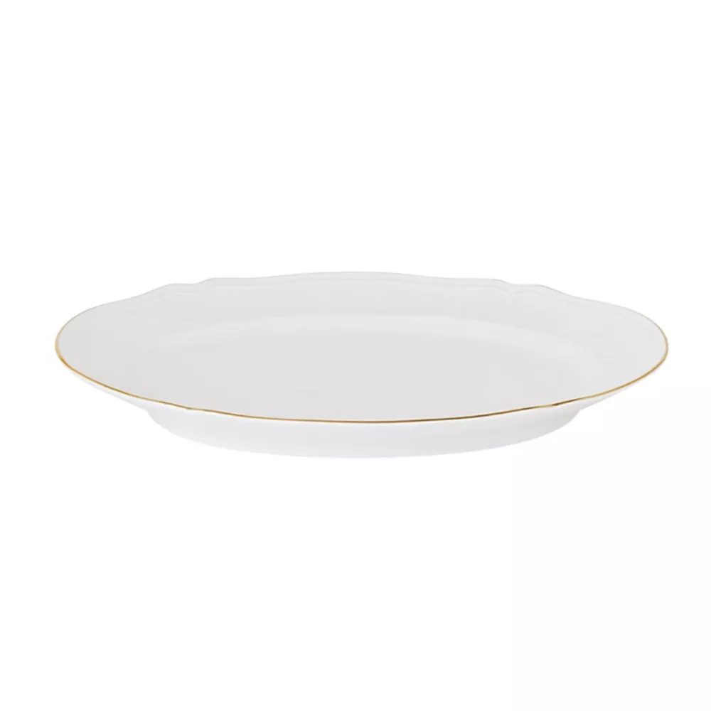 38 CM OVAL PLATTER, ANTICO DOCCIA - RICHARD GINORI Doccia is an extraordinary place, a true paradise where, back in 1735, the artistic and entrepreneurial intuition of Marchese Carlo Ginori gave birth to the historic Manifattura, the factory of white gold, becoming our home. The Antico Doccia shape, born in that moment, has left an indelible mark in defining Ginori's true essence as a leader in the field of excellence in the production of pure porcelain and design. Its curved lines and the profile inspired by late-Baroque Florentine silverware are the brilliantly simple ingredients that still make Antico Doccia a timeless style today. The essential and pure white evokes a sense of coming home, to a place that is uniquely ours and never ceases to fascinate. Also available with decorated rim: Corona oro, Corona Blue cobalto and Platino Dimensions: 38 cm Material: Pure White Porcelain DISCOVER THE COLLECTION: Antico Doccia Ginori