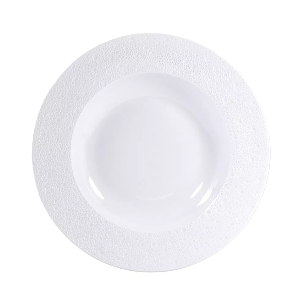 DISCOVER THE COLLECTION: Ecume by Bernardaud LARGE RIM SOUP 29,5 CM, ECUME 0733/20450 - BERNARDAUD The Ecume line by Bernardaud is an elegant and sophisticated option for those seeking high-quality porcelain for their table. Characterized by a modern and minimalist design, the Ecume line stands out for its unique texture, with shapes reminiscent of bubbles. Each piece is handmade by Bernardaud's master craftsmen, using traditional techniques to ensure maximum quality and durability over time. Available in various shapes and sizes, the Ecume line is perfect for creating refined and chic tables suitable for any occasion. Add a touch of class to your home with the Ecume line by Bernardaud. Material: porcelain Dimensions: 29,5 cm Sku: 073320450
