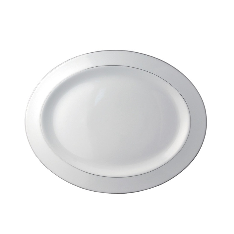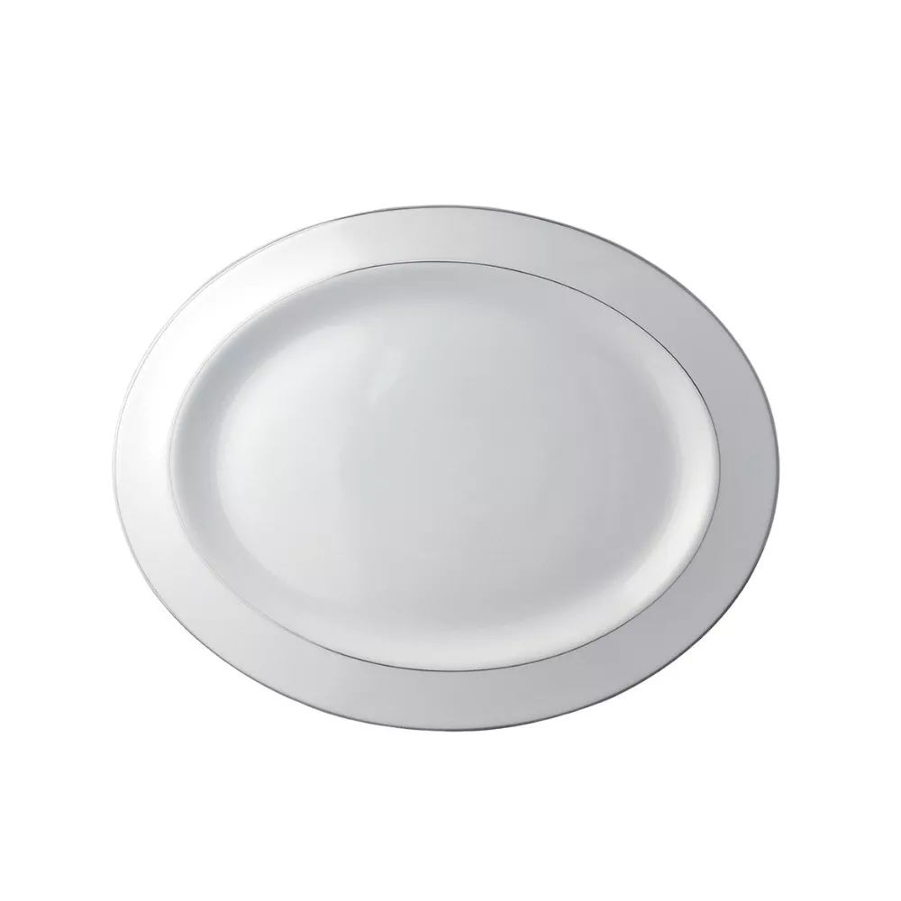 OVAL TRAY 33 CM, CRISTAL 0758 / 109 - BERNARDAUD This line of plates is characterized by a modern and refined design, with a slender silhouette and clean lines that perfectly adapt to any type of decor. The porcelain used for the production of the plates is of the highest quality, worked with care and attention to detail to ensure maximum resistance and durability. The range of products in the "Cristal" line includes dinner plates, soup plates, dessert plates, tea and coffee saucers, and much more, each characterized by a timeless beauty and impeccable craftsmanship. Cristal by Bernardaud is synonymous with elegance, refinement, and artisanal quality, with a modern and versatile design suitable for any occasion. Material: Porcelain SKU: 0758109 Dimensions: 33 cm