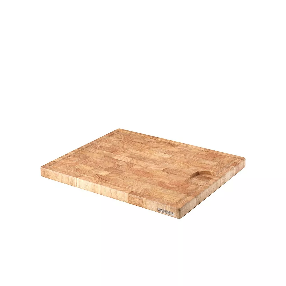 The large Continenta chopping board, measuring 42x34 cm, features handy grooves along the edges to collect liquids while cutting and slicing ingredients. Ideal for preparing meats, vegetables, and more, this board provides a spacious and durable surface. Perfect for keeping your countertop clean, its robustness and practicality make it a great addition to your kitchen.