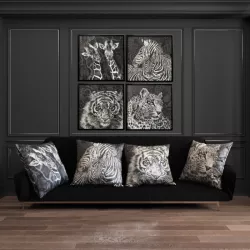 Squared Tiger Tray which, with its double function "Table & Wall", offers the possibility of being used also as a painting for wall combinations. Collection: Wild Spirit Material: Birch wood Dimensions: 45 x 45 cm - h 4,5 cm It is recommended to use mild cleaning products and a soft cloth. This tray is not safe for food contact. SKU code: 6-15-1