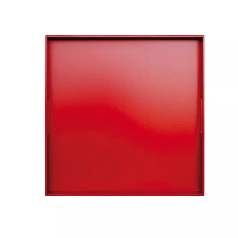 Squared Monocolor Red Tray which, with its double function "Table & Wall", offers the possibility of being used also as a painting for wall combinations. Collection: Monocolor Material: Birch wood Dimensions: 45 x 45 cm - h 4,5 cm It is recommended to use mild cleaning products and a soft cloth. This tray is not safe for food contact. SKU code: 6-5-1