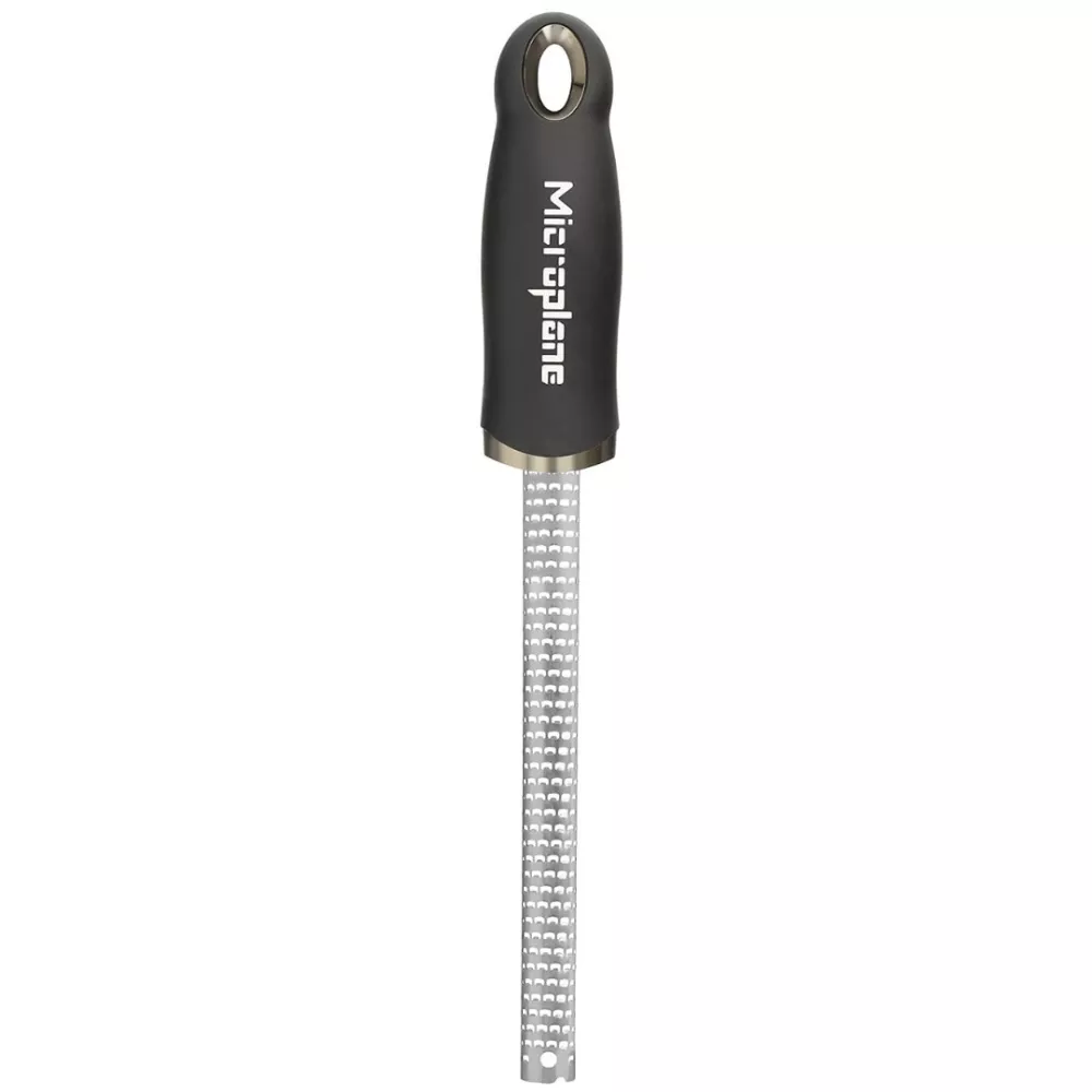 The Spice Grater from the Premium Classic series by Microplane is the perfect tool to enhance any dish with fresh, intense aromas. Featuring ultra-sharp stainless steel blades photo-etched in the USA, it effortlessly grates even the hardest spices such as nutmeg, cinnamon, star anise or Tonka beans, preserving their unique fragrance and flavor. The ergonomic soft-touch handle ensures comfort, while the non-scratch rubber feet provide stability. Easy to clean and dishwasher safe, it comes with a reusable protective cover for safe storage. A refined and practical tool, the perfect gift for passionate cooks.