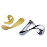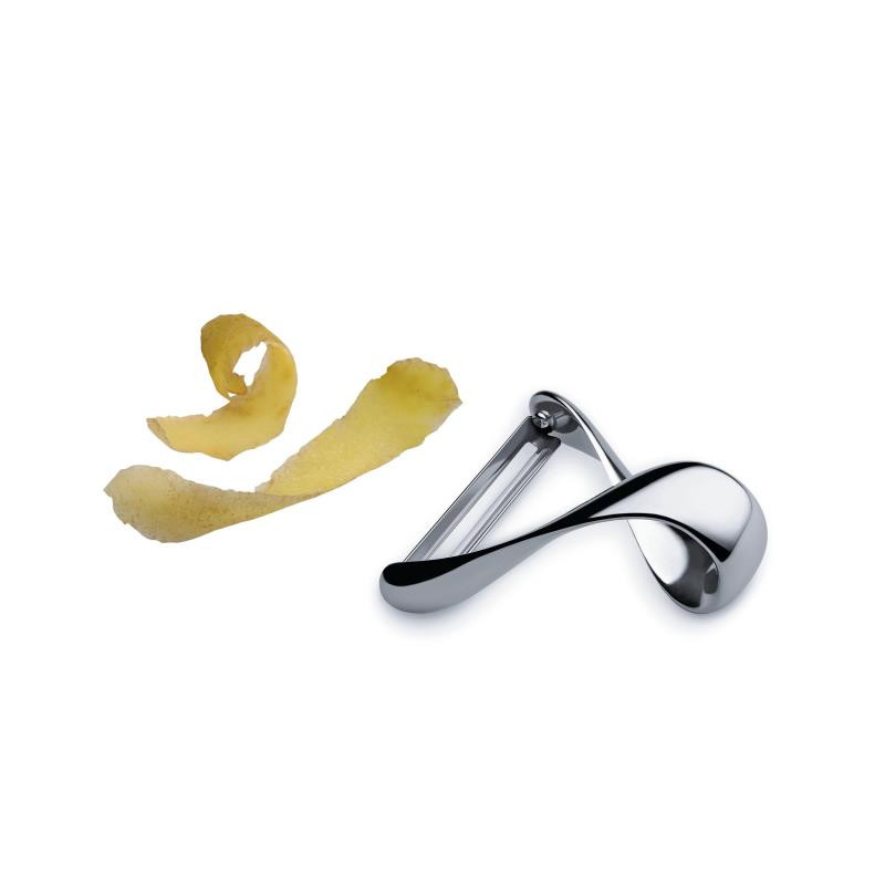Alessi Peeler Sfrido code: VS02 Designer Valerio Sommella Peeler in 18/10 stainless steel mirror polished. Sfrido, the potato peeler designed by Valerio Sommella is part of the collection Objects Bijoux. Its very name (‘sfrido’ is Italian for scrap) hints at its function, a clear reference to the waste produced when using it. The story of Sigurd and his sword, which was so sharp that he was able to cut an anvil and a dragon in two, were a source of inspiration. The shape of Sfrido recalls a stylised ribbon: a continuous band that gently bends and twists and eventually encloses the blade. The curves created by these dynamic lines enable you to hold the object in a natural way, guaranteeing an ergonomic grip. The reduced size and smooth forms of the potato peeler enable the user to grip the object in the way they find most comfortable and it's suitable for all types of vegetables. Width (cm): 6.00 Height (cm): 3.00 Length (cm): 6.50
