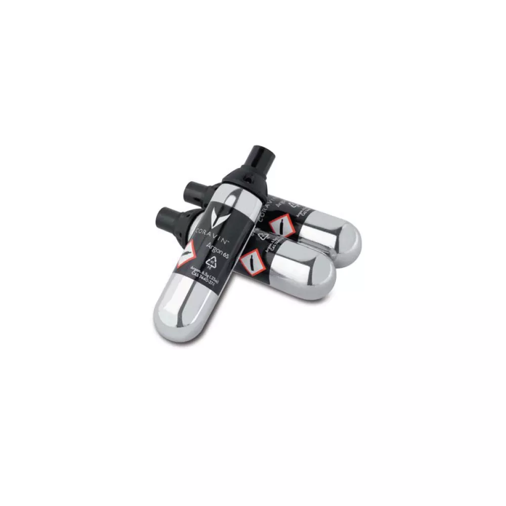 Le capsule di Argon Coravin Pure™ alimentano i dispositivi Coravin Timeless e Pivot™. Sono riempite con gas Argon puro che pressurizza la bottiglia per permettere al vino di fuoriuscire e ne rimpiazza il volume all'interno della stessa garantendo protezione al vino una volta che il sistema viene rimosso. Le Capsule di Argon non sono compatibili con il Coravin Sparkling™. Capacità: 21 ml