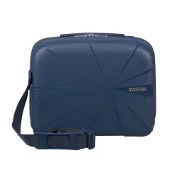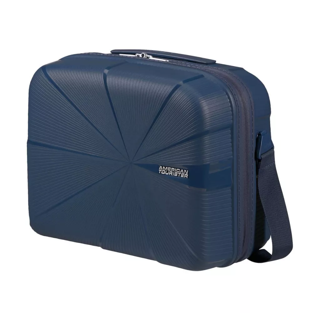 Il Beauty Case Starvibe di American Tourister e l’accessorio perfetto per organizzare cosmetici e articoli da viaggio con praticita e stile. Realizzato in 100% polipropilene, offre una struttura rigida e resistente agli urti, ideale per proteggere il contenuto durante gli spostamenti. Il design compatto ma capiente da 14 L consente di avere tutto a portata di mano, mentre la tonalita navy dona un’eleganza discreta e contemporanea. Perfetto da abbinare ai trolley della stessa linea per un set coordinato e funzionale.