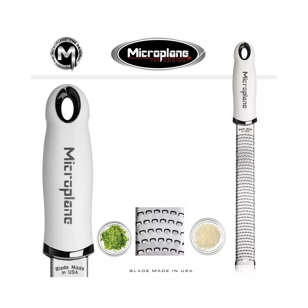 L'iconica Zester Premium Classic di Microplane ha rivoluzionato il mondo della cucina con la sua forma lunga e stretta e le affilatissime lame foto-incise in acciaio inossidabile – made in USA. Con 400 dentini ultra precisi, permette di grattugiare con facilità scorza di agrumi, formaggi stagionati, cioccolato, spezie, tartufi, noci e molto altro.