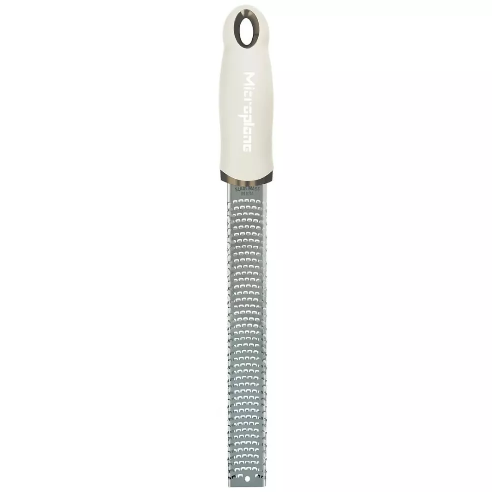 L'iconica Zester Premium Classic di Microplane ha rivoluzionato il mondo della cucina con la sua forma lunga e stretta e le affilatissime lame foto-incise in acciaio inossidabile – made in USA. Con 400 dentini ultra precisi, permette di grattugiare con facilità scorza di agrumi, formaggi stagionati, cioccolato, spezie, tartufi, noci e molto altro.