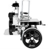 La Berkel Tribute è un'affettatrice a mano con volano, riedizione della storica Berkel modello B degli anni '20, un tempo realizzata in Indiana (USA). Questa affettatrice a volano, dotata di dettagli in acciaio inox cromato e di tag NFC per certificato di autenticità, è disponibile nel colore rosso ed è un tributo alla tradizione e all'eleganza che incontrano le tecnologie più moderne. Ideale per chi necessita di un prodotto adatto a un uso intensivo, sia per la ristorazione che per l'uso domestico, questo modello di affettatrice con lama dal diametro di 300 mm e affilatoio incorporato consente di ottenere un taglio uniforme e professionale dei salumi, senza rinunciare a un design prezioso. Peso: 52 kg Diametro lama: 30 cm Materiale lama affettatrice: 100Cr6 Spessore taglio: 0 - 1,5 mm Capacità di taglio (circolare): 21 cm Capacità di taglio (rettangolare): 27x21 cm Dettagli: Finiture in acciaio lucido, meccanismo a vite per l'apertura della protezione lama. Parti removibili: parafetta; guantiera; sovrapiatto porta merce Affilatoio: incluso, a due movimenti