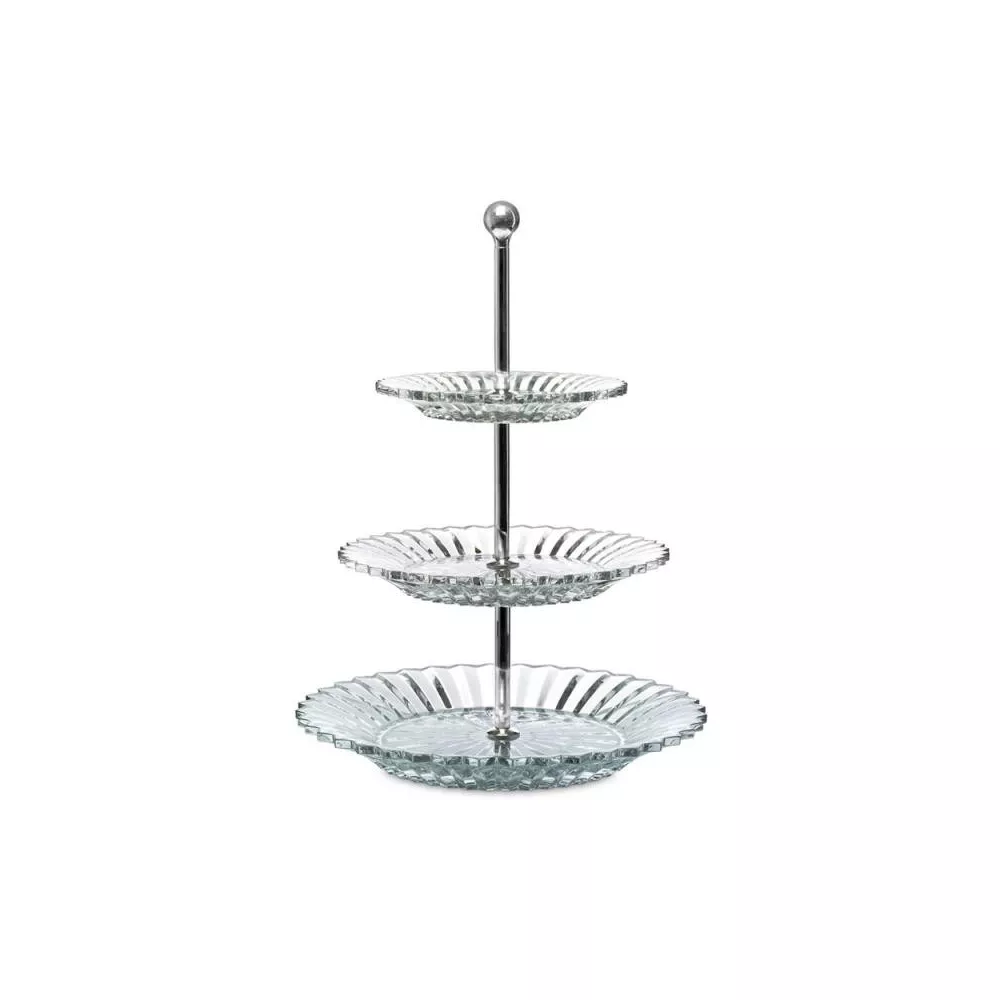 L'alzata per dolci a tre piani Mille Nuits è un affascinante centrotavola. Composta da eleganti piatti decorativi in cristallo e una struttura in metallo argentato, combina stile e funzionalità. I dettagli incisi sul fondo di ogni piatto creano magnifici giochi di luce, mentre le linee che si irradiano dal centro esaltano le proprietà prismatiche del cristallo Baccarat. È disponibile anche una versione a due piani, altrettanto perfetta per ogni ricevimento. La collezione Mille Nuits, ispirata alle storie de "Le mille e una notte", include anche calici, articoli da tavola e per l'illuminazione. I piatti sono offerti in tre formati: piattino, piatto piano e piatto da dessert, tutti conformi alle dimensioni standard europee. Altezza 34.75 cm Larghezza 49.80 cm Lunghezza 49.80 cm Peso 2.50 Kg Diametro 26 cm Materiale Cristallo Colore Trasparente Fabbricato in Francia Anno di creazione 2009 Designer del prodotto Mathias