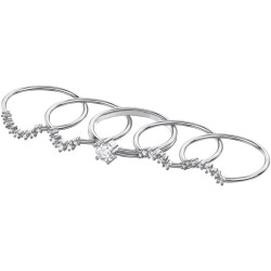 Questo anello a fasce di grande stile è decorato con gruppi di delicati cristalli bianchi con incastonatura a griffe, scintillanti come le stelle, e presenta un grande elemento di cristallo centrale. Un design moderno e versatile, puoi riordinare gli anelli come desideri per creare look differenti o indossarli su dita diverse. Colore: Bianco Materiale: Placcato color oro rosa / Rodio