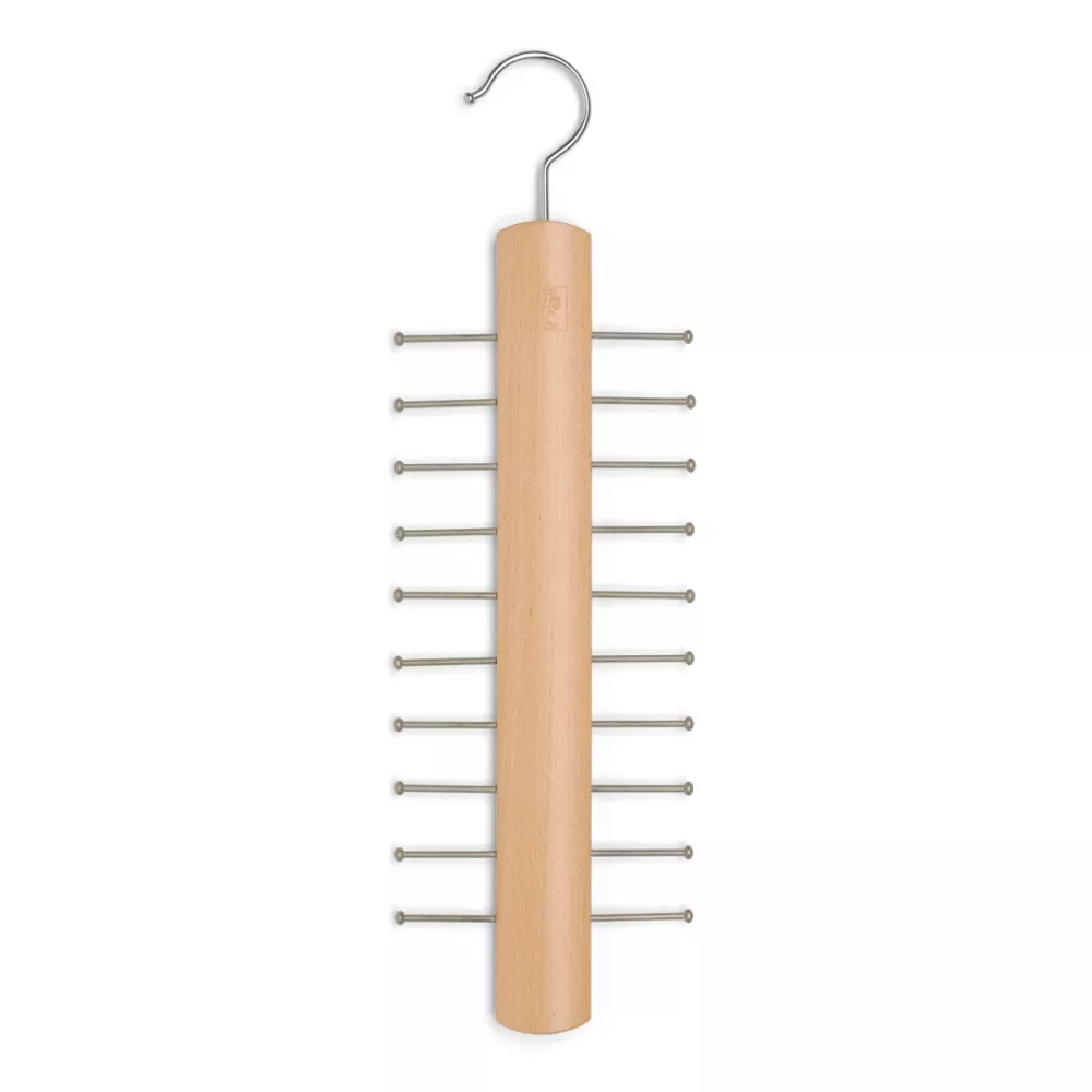 Portacravatte in legno di faggio da appendere in armadio con ganci in metallo cromato. Dimensioni in cm. H 49 P 2 L 15
