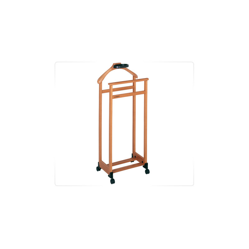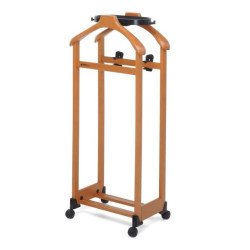 L'INDOSSATORE - FOPPA PEDRETTI Indossatore in legno massiccio verniciato trasparente dotato di spalla porta giacche e camicie, barra per pantaloni, pinza porta gonne, base per scarpe e vaschetta porta oggetti.Facilmente spostabile grazie alle quattro ruote piroettanti. Dimensioni in cm: (altezza, profondità, larghezza) 103 x 27 x 46 cm