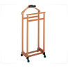 L'INDOSSATORE - FOPPA PEDRETTI Indossatore in legno massiccio verniciato trasparente dotato di spalla porta giacche e camicie, barra per pantaloni, pinza porta gonne, base per scarpe e vaschetta porta oggetti.Facilmente spostabile grazie alle quattro ruote piroettanti. Dimensioni in cm: (altezza, profondità, larghezza) 103 x 27 x 46 cm