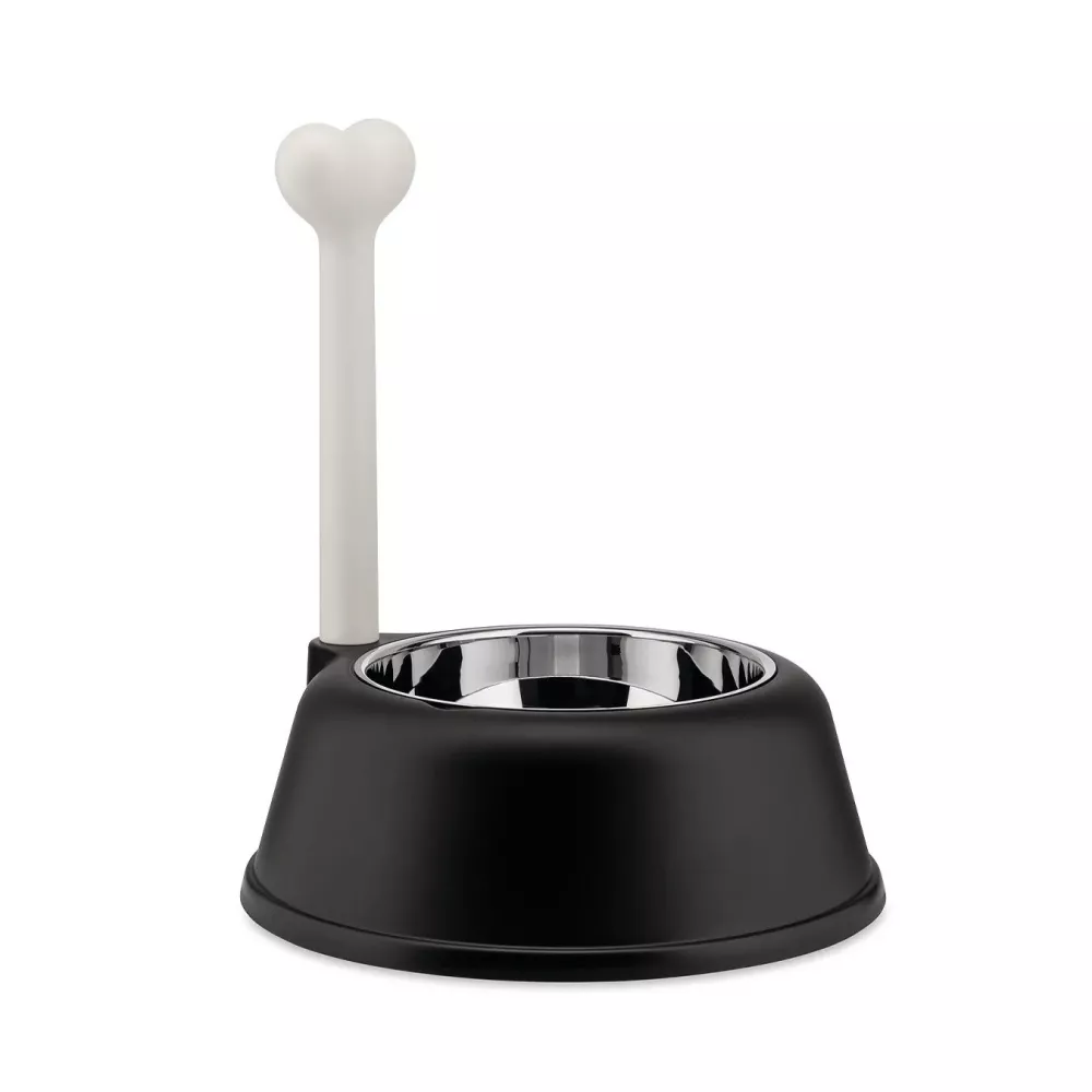 CIOTOLA PER CANI, LUPITA AMMI02 - ALESSI La ciotola per cani Lupita fa parte di una ricca collezione di oggetti ideati da Miriam Mirri per gli animali domestici. Un disegno evocativo che richiama immediatamente l'immaginario del mondo canino, grazie alla pratica impugnatura a forma di osso che rende l'oggetto facile da trasportare. Realizzata in resina termoplastica, Lupita contiene una ciotala in acciaio inossidabile resistente e semplice da pulire. Un disegno originale, piacevole da esibire in casa o mostrare in giardino. Ciotola per cani in resina termoplastica ed acciaio inox 18/10. Designer: Miriam Mirri Capacita: 150 cl Diameter: 32 cm Height: 37 cm