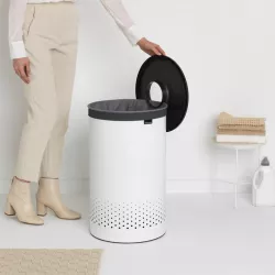 Rendi i giorni di bucato più semplici e organizzati con il portabiancheria Brabantia da 60 litri. Il coperchio mantiene la biancheria nascosta e l'apertura Quick-Drop permette di inserire facilmente i capi senza dover rimuovere il coperchio. Quando è il momento di fare il bucato, il sacco interno in cotone può essere rimosso facilmente. Realizzato in acciaio antiruggine, è dotato di fori di ventilazione e una base in plastica che protegge il pavimento, rendendolo perfetto per qualsiasi ambiente della casa.