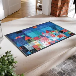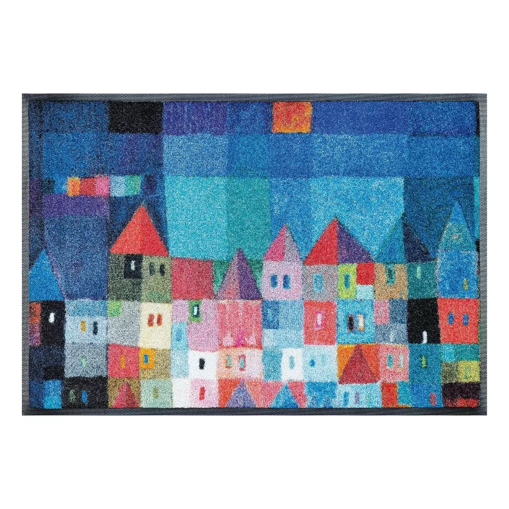 Lo zerbino Colorful Houses di Kleen Tex unisce design vivace e funzionalita avanzata, portando un tocco di colore e personalita all ingresso di casa. Il motivo decorativo con casette colorate crea un atmosfera accogliente e dinamica, perfetta per chi ama ambienti allegri e curati nei dettagli. La superficie in nylon di alta qualita garantisce un eccellente assorbimento dello sporco, mentre il retro in gomma nitrilica assicura stabilita e sicurezza, risultando antiscivolo e completamente privo di PVC.