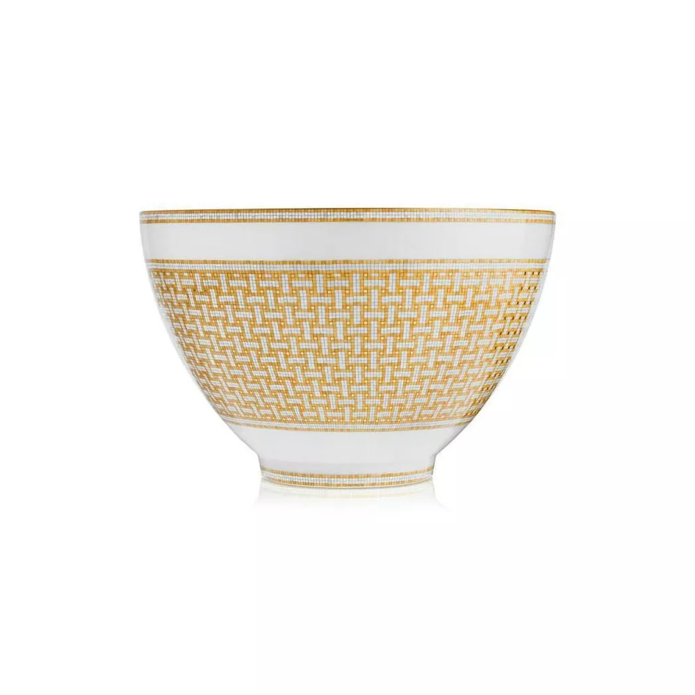 Hermes Mosaique au 24 Or Ciotola Punch Ciotola da punch in porcellana che sfoggia un design elegante e decorativo, grazie al mosaico impresso sulla porcellana, con fregi geometrici nei toni del grigio opaco messi in risalto dalla luce dell”ocra intenso.Tocchi di oro brillante esaltano il decoro. Dimensioni: diametro 26,5 cm Capacità: 500 cl Codice: 26029P Per tutti i prodotti Hermés non disponibili al momento dell'acquisto, si prega di considerare tempistiche di consegna dai 6 fino ad oltre i 12 mesi.