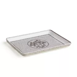 Vassoio in porcellana Decorazioni serigrafate e applicate a mano. Cabochon di platino 24 carati. La collezione Mosaïque au 24 platino riprende, attraverso il disegno di Benoit Pierre Emery e i fregi geometrici, i codici estetici originali della boutique al n° 24 di rue du Faubourg-Saint-Honoré, a Parigi. Fabbricato in Francia Disegnato da Benoit Pierre Emery Dimensioni: L 16 x l 12 cm Sku: P035089P Per tutti i prodotti Hermés non disponibili al momento dell'acquisto, si prega di considerare tempistiche di consegna dai 6 fino ad oltre i 12 mesi.