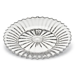 Il piccolo piatto Mille Nuits, ispirato all'Oriente, aggiunge un tocco unico al cristallo Baccarat, perfetto per arricchire la tavola e impreziosire il pasto. Il motivo inciso sul fondo crea affascinanti giochi di luce, mentre le linee che si irradiano dal centro mettono in risalto le proprietà prismatiche del cristallo. Insieme al piatto grande e a quello da dessert, il piatto piccolo completa un servizio impeccabile per un ricevimento. "Mille Nuits" richiama il fascino delle storie orientali de "Le Mille e una notte". Disegnata da Mathias, la collezione comprende anche bicchieri e articoli per l'illuminazione. Altezza 1.40 cm Larghezza 13.60 cm Lunghezza 13.60 cm Peso 0.16 Kg Diametro 12.10 cm Materiale Cristallo Colore Trasparente Fabbricato in Francia Anno di creazione 2011 Designer del Prodotto Mathias