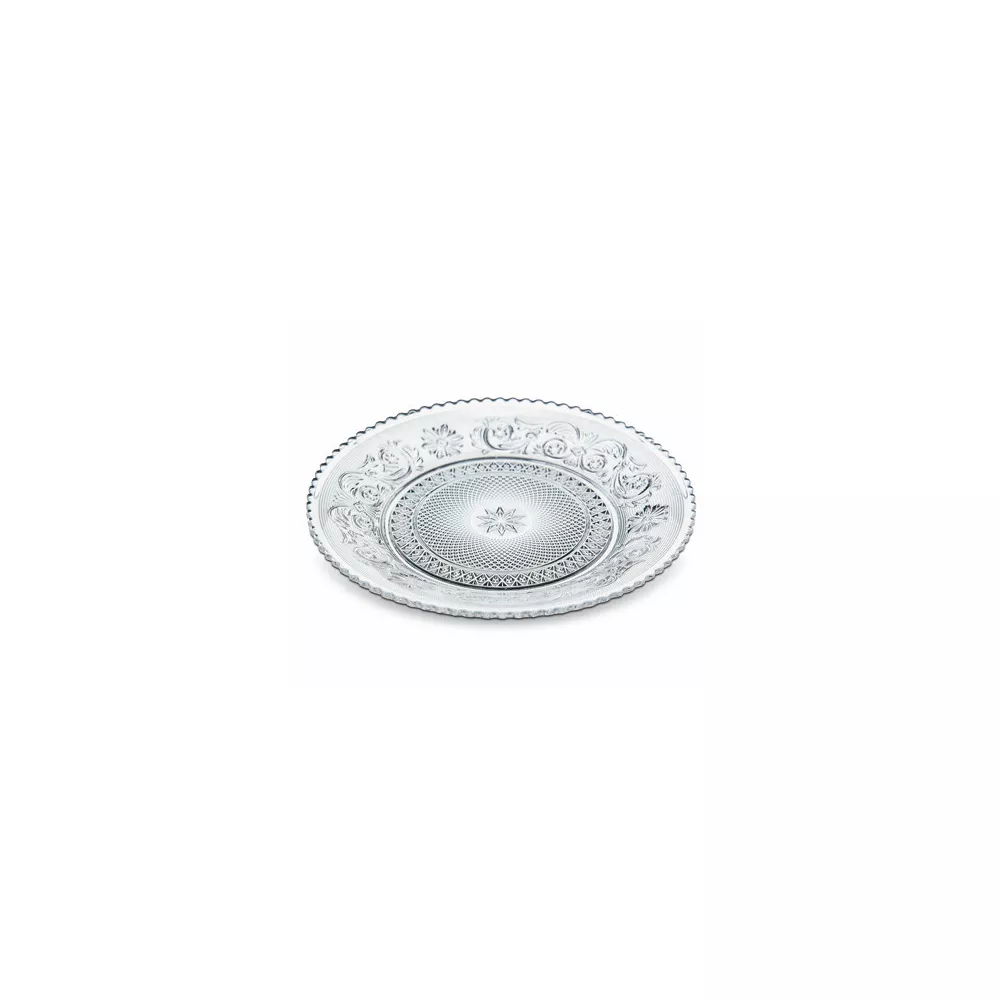 I bordi irregolari del piatto formano piccole onde che si alternano. Subito sotto, una larga fascia decorata con motivi geometrici, arricchita da stelle e foglie di acanto, avvolge il piatto. Questa dettagliata ghirlanda è circondata da cristallo trasparente, decorato con un motivo a tratteggio incrociato nella parte inferiore. Creato per Baccarat nel XIX secolo, questo design faceva parte di un servizio da tavola completo, comprensivo di brocche, bottiglie, coppe e calici. Oggi, la collezione Arabesque si è ridotta a piatti e coppe da dessert, mantenendo gli stessi raffinati dettagli. misura: diametro cm 16