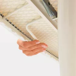 ASSE DA STIRO "A" 110 x 30, 100628 - BRABANTIA L'asse da stiro è uno degli accessori più importanti e utili nella vita di una persona. Il comodo e funzionale asse da stiro Brabantia contribuirà a velocizzare e facilitare notevolmente il processo di stiratura, oltre a trasformare un compito noioso in un piacevole passatempo. Il design dell'asse è altamente affidabile e stabile. Durevole: il design a rete "fluttuante" protegge l'asse dalla deformazione se esposto a temperature elevate.La superficie di lavoro idealmente piatta offre alta velocità e qualità di stiratura. La superficie è ricoperta da una fodera in cotone 100%, foderata in gommapiuma, con cordino elastico di fissaggio. Ferro da stiro non incluso nella confezione Dimensioni: 110x30 cm Peso: 5,6 kg Colore: bianco Marca: Brabantia