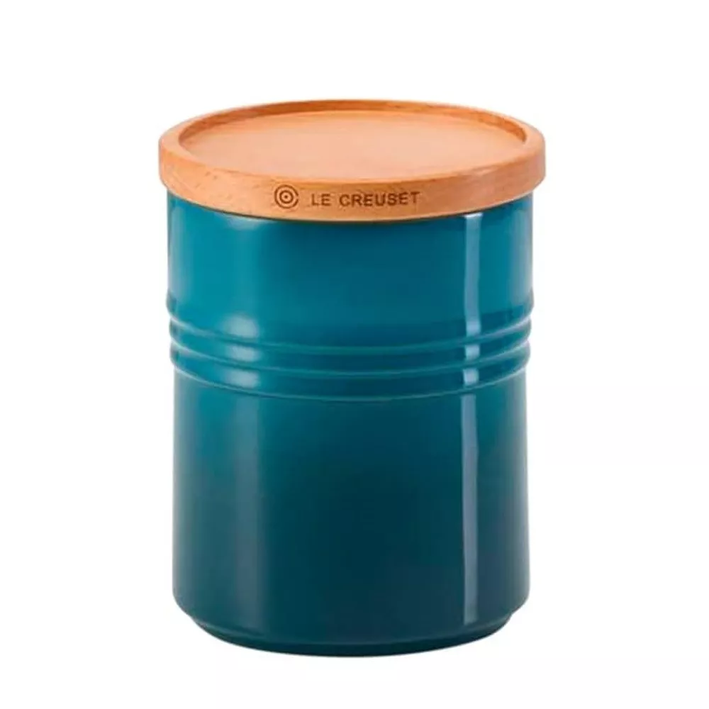 BARATTOLO M CON COPERCHIO IN LEGNO, GRES VETRIFICATO 10 CM - LE CREUSET Questo barattolo in gres vetrificato è indispensabile per l'organizzazione in cucina. Da usare per mantenere freschi il tè, il caffè e lo zucchero o per conservare ingredienti su un ripiano a vista. Caratterizzato da un design attento a stile e funzionalità, questo barattolo si impila con gli altri della collezione. - Resistente ai graffi - Facile da pulire. - Mantiene la temperatura uniforme e garantisce resistenza e durata nel tempo. - Adatto sia al caldo che al freddo, è termoresistente da -23 °C a +260 °C. - Materiale: Gres Vetrificato - Garanzia 10 anni - Capacità: 0.54 L - Dimensioni: L 9.9 cm x L 9.9 cm x A 12.2 cm