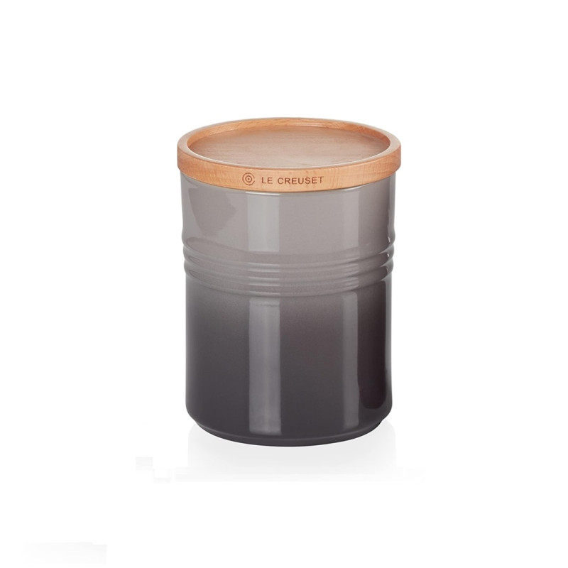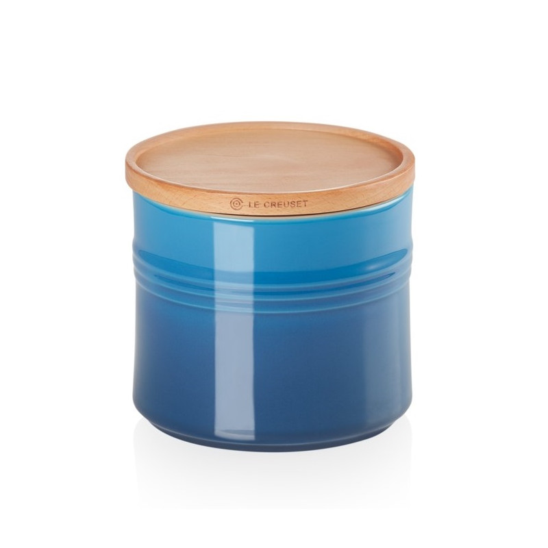 BARATTOLO M CON COPERCHIO IN LEGNO, GRES VETRIFICATO 10 CM - LE CREUSET Questo barattolo in gres vetrificato è indispensabile per l'organizzazione in cucina. Da usare per mantenere freschi il tè, il caffè e lo zucchero o per conservare ingredienti su un ripiano a vista. Caratterizzato da un design attento a stile e funzionalità, questo barattolo si impila con gli altri della collezione. - Resistente ai graffi - Facile da pulire. - Mantiene la temperatura uniforme e garantisce resistenza e durata nel tempo. - Adatto sia al caldo che al freddo, è termoresistente da -23 °C a +260 °C. - Materiale: Gres Vetrificato - Garanzia 10 anni - Capacità: 0.54 L - Dimensioni: L 9.9 cm x L 9.9 cm x A 12.2 cm
