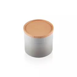 BARATTOLO M CON COPERCHIO IN LEGNO, GRES VETRIFICATO 10 CM - LE CREUSET Questo barattolo in gres vetrificato è indispensabile per l'organizzazione in cucina. Da usare per mantenere freschi il tè, il caffè e lo zucchero o per conservare ingredienti su un ripiano a vista. Caratterizzato da un design attento a stile e funzionalità, questo barattolo si impila con gli altri della collezione. - Resistente ai graffi - Facile da pulire. - Mantiene la temperatura uniforme e garantisce resistenza e durata nel tempo. - Adatto sia al caldo che al freddo, è termoresistente da -23 °C a +260 °C. - Materiale: Gres Vetrificato - Garanzia 10 anni - Capacità: 0.54 L - Dimensioni: L 9.9 cm x L 9.9 cm x A 12.2 cm