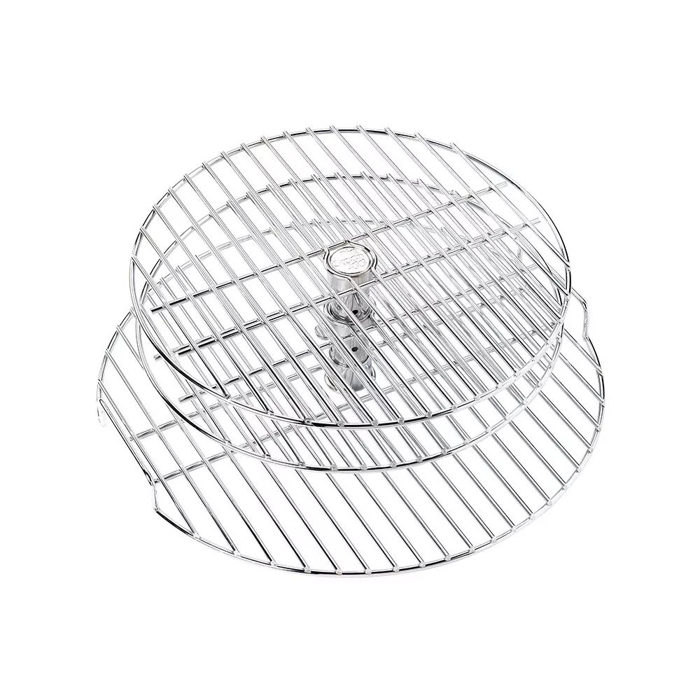 Lo spazio di cottura del tuo Big Green Egg Large non è sufficiente? Aggiungi la griglia di cottura a tre livelli in acciaio inossidabile. La griglia inferiore è fissa; al di sopra ci sono due griglie girevoli regolabili in altezza. In questo modo puoi cucinare contemporaneamente piatti diversi su tre livelli. Con un vantaggio in più: la griglia si smonta, così la puoi mettere facilmente in lavastoviglie.