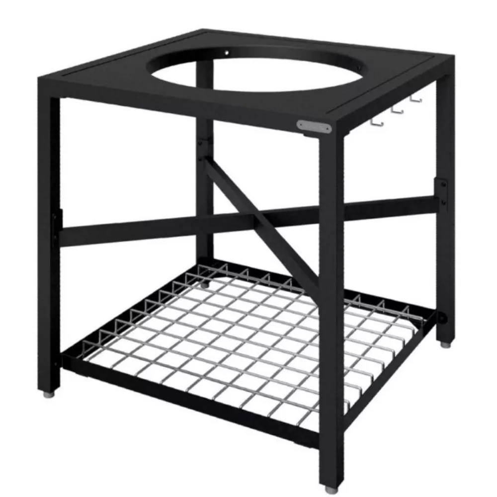 Il telaio EGG Frame rappresenta la base perfetta per il tuo Big Green Egg formato L. Robusto e resistente, è dotato di piano superiore in acciaio inox con inserto, ganci porta utensili e 4 piedi regolabili. Le gambe possono essere integrate con ruote da 10 cm per una maggiore mobilità.