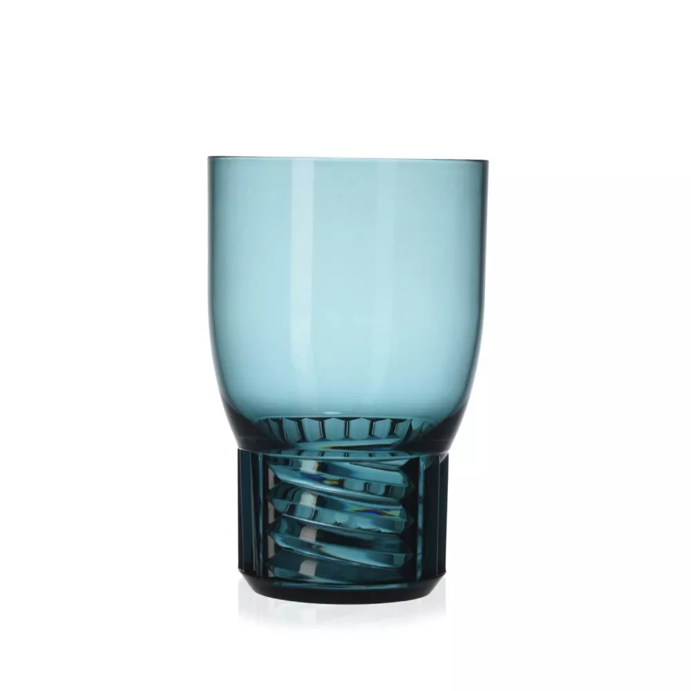 BICCHIERE ACQUA, TRAMA 1513 - KARTELL La collezione di servizi da tavola Trama, ideata da Patricia Urquiola, è una raccolta completa di piatti ispirati alle ceramiche giapponesi. Questi piatti si distinguono per le loro sofisticate texture e i colori naturali della terra, che creano un effetto opaco. Come i servizi di terracotta tipici delle case di campagna, i piatti della collezione Trama presentano una superficie ruvida al tatto e sono decorati con un segno grafico che incarna con eleganza l'essenza essenziale della collezione. Materiale Tecnopolimero termoplastico Trasparente Dimensioni Altezza: 13 cm Diametro: 8,5 cm Peso unitario: 0.115 kg