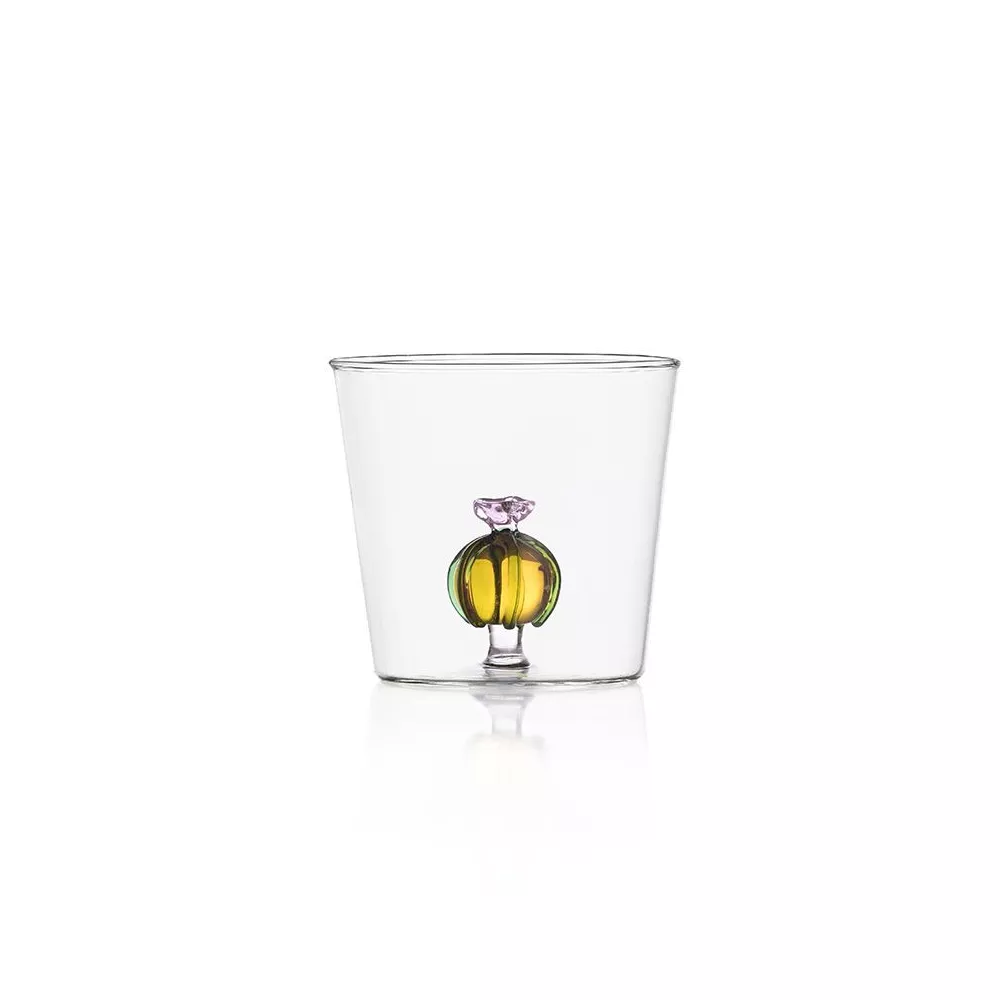 BICCHIERE TUMBLER CACTUS FIORE ROSA, DESERT PLANTS, 09352102 - ICHENDORF MILANO La collezione Desert Plants è composta da elementi che richiamano la natura, con cactus colorati che creano un'immaginaria scenografia paesaggistica sul tavolo. Uno dei pezzi distintivi della collezione è un bicchiere con un cactus colorato all'interno del vetro, che aggiunge un tocco originale, leggero ed elegante al tavolo o anche come oggetto decorativo. Questo bicchiere in vetro soffiato artigianalmente è caratterizzato dalla sua perfetta trasparenza e realizzato con vetro borosilicato lavorato a lume a mano. Design by: Alessandra Baldereschi Vetro borosilicato lavorato a lume e realizzato a mano Dimensioni: 8,5 x H 8 cm Capacità: 300 ml Lavabile in lavastoviglie a basse temperature (consigliati 40°).