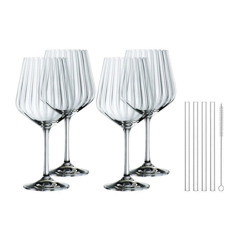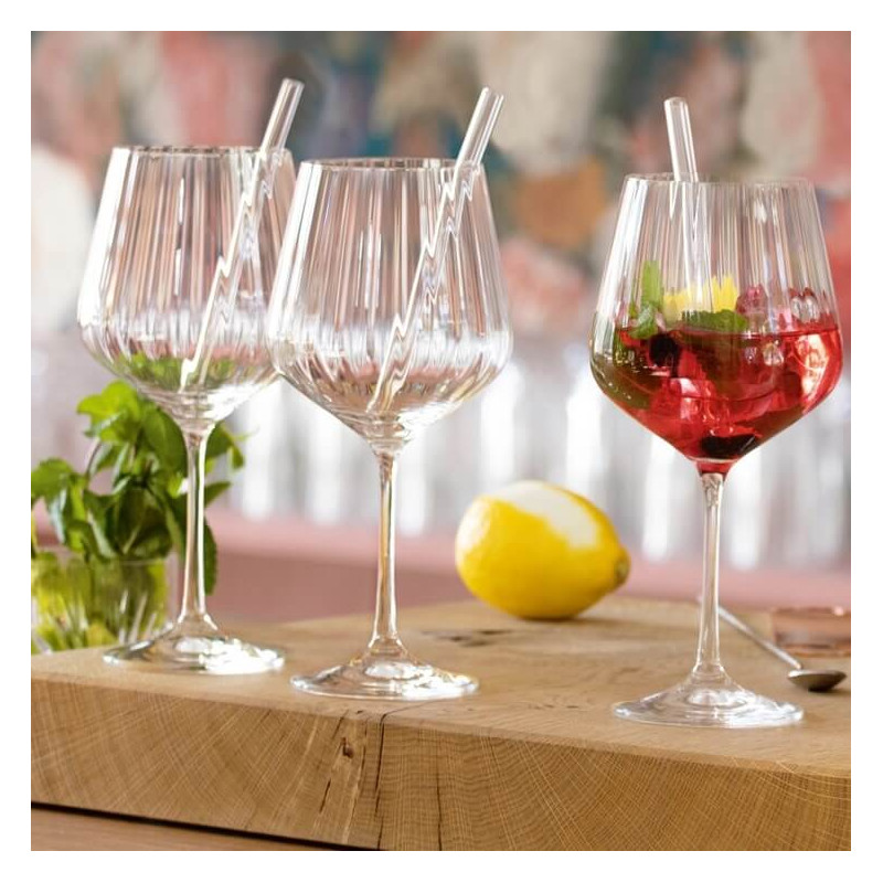 Il bicchiere Gin Tonic è l'ideale per gli appassionati di gin che vogliono apprezzare appieno gli aromi dei suoi botanicals. Con il suo ampio calice e l'elegante stelo, questi bicchieri senza fronzoli rappresentano un'aggiunta moderna perfetta per chi ama i cocktail. La collezione Tastes Good di Nachtmann mette al centro della sua filosofia tre momenti essenziali della degustazione! Looks Good: Le cannucce in vetro su misura completano l'estetica degli eleganti bicchieri di cristallo. Tastes Good: Preparare drink a casa senza l'uso di plastica o carta monouso che potrebbero alterarne il sapore. Feels Good: Celebriamo prodotti sostenibili, riutilizzabili e lavabili in lavastoviglie. Questo prodotto è realizzato in modo industriale e potrebbe presentare tolleranze minime nelle dimensioni dovute alla procedura di produzione. È possibile lavare questo articolo in lavastoviglie. Le cannucce in vetro sono adatte al lavaggio in lavastoviglie, e viene fornito uno spazzolino per il lavaggio a mano. Volume: 640 cc Altezza: 22,2 cm