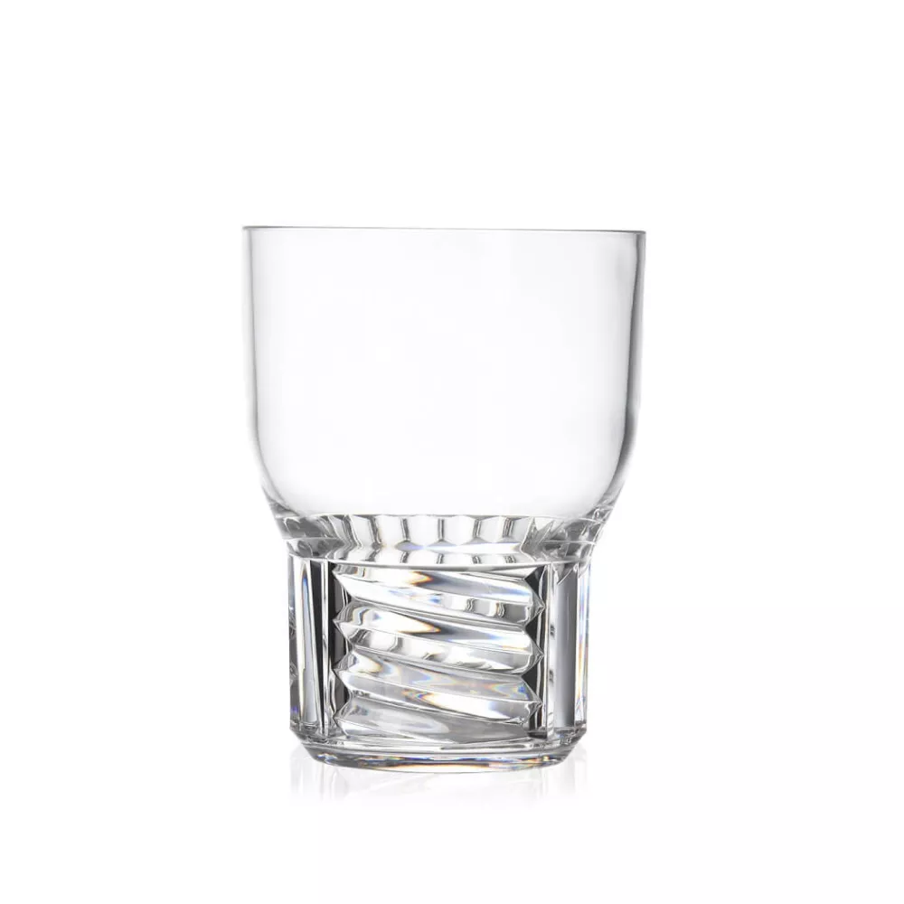 BICCHIERE VINO TRAMA, 1514 - KARTELL La collezione di servizi da tavola Trama, ideata da Patricia Urquiola, è una raccolta completa di piatti ispirati alle ceramiche giapponesi. Questi piatti si distinguono per le loro sofisticate texture e i colori naturali della terra, che creano un effetto opaco. Come i servizi di terracotta tipici delle case di campagna, i piatti della collezione Trama presentano una superficie ruvida al tatto e sono decorati con un segno grafico che incarna con eleganza l'essenza essenziale della collezione. Materiale Tecnopolimero termoplastico Trasparente Dimensioni Altezza: 11 cm Diametro: 8,5 cm Peso unitario: 0.120 kg