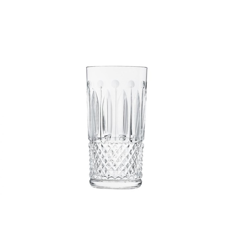 La collezione Tommy, un classico della produzione Saint-Louis dal 1928, colpisce per eleganza e ricchezza. Per la sua realizzazione la maison utilizza tre diverse tecniche di taglio: sfaccettato, a sfera e a diamante. La fine lavorazione del cristallo dona splendore alla tavola, facendone apprezzare la sua magia. Bicchiere Alto Tommy Dimensioni: Altezza 140 mm, Diametro 74 mm, Volume 34 cl Materiale: bicchiere in cristallo Codice prodotto: 12426200