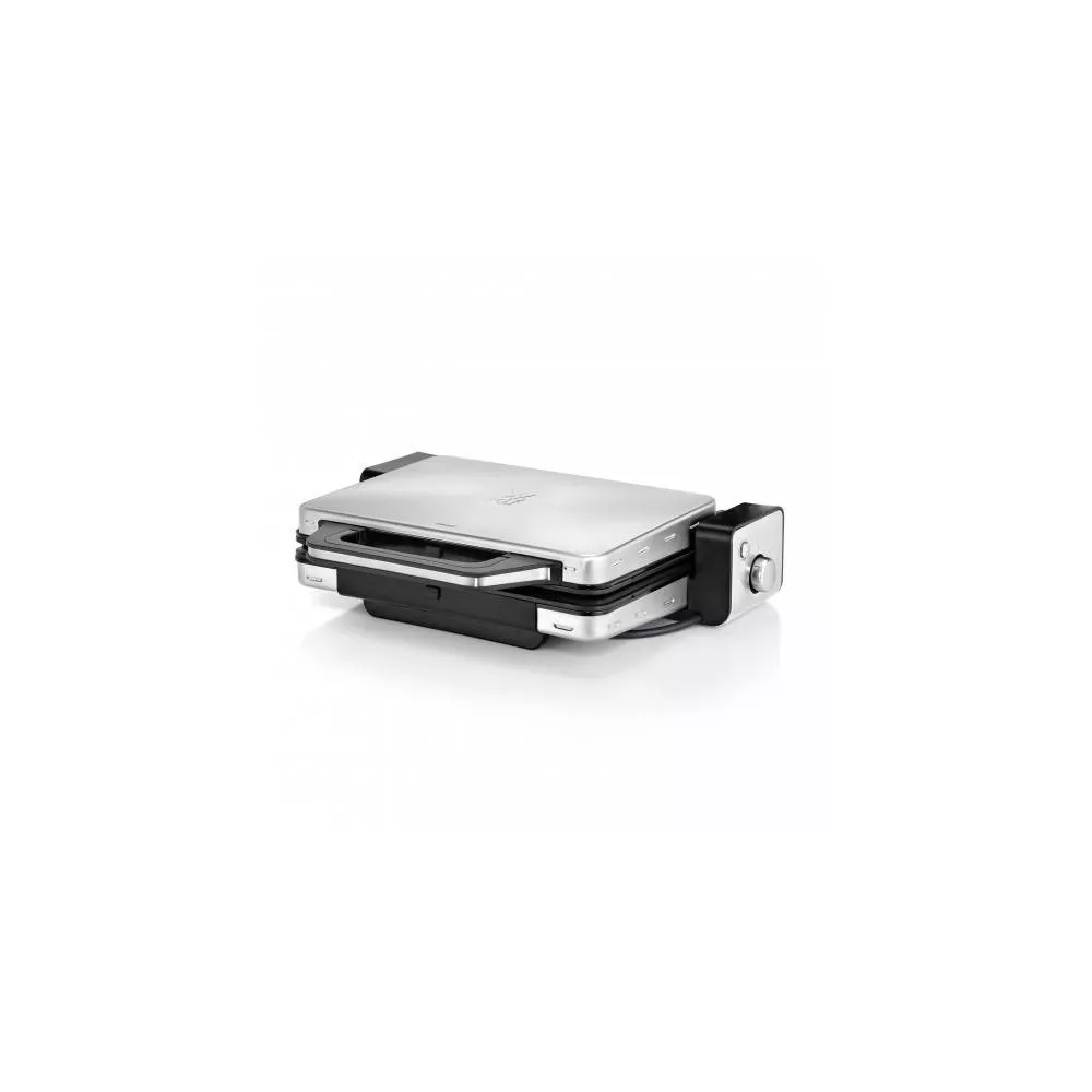 Codice: 1511 0011 Corpo in Cromargan® Livelli di temperatura regolabili Pratico avvolgicavo con alloggiamento cavo 2 piastre antiaderenti e anti graffio in alluminio pressofuso Vassoio raccogli grasso amovibile in Cromargan® La griglia a contatto Lono 2-in-1 in Cromargan® può essere utilizzata sia come griglia a contatto chiusa che come barbecue da tavola apribile. La piastra è unica, si adatta perfettamente al cibo anche a diverse altezze. Il rivestimento antiaderente rende non necessario l’utilizzo di olio o grassi. Le due piastre sono antigraffio e perfette per grigliare pesce, carne e verdure; oltre ad essere molto flessibili mantengono sempre un contatto ottimale con il cibo. Potenza: 2100 Watt