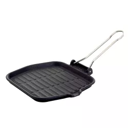La bistecchiera Dietella quadrata in ghisa consente di preparare pasti privi di grassi, promuovendo una cucina salutare e saporita. Grazie alla sua capacità di distribuire uniformemente il calore, è ideale per cuocere carne e verdure senza bisogno di aggiungere oli o burri. Non è adatta per essere lavata in lavastoviglie.