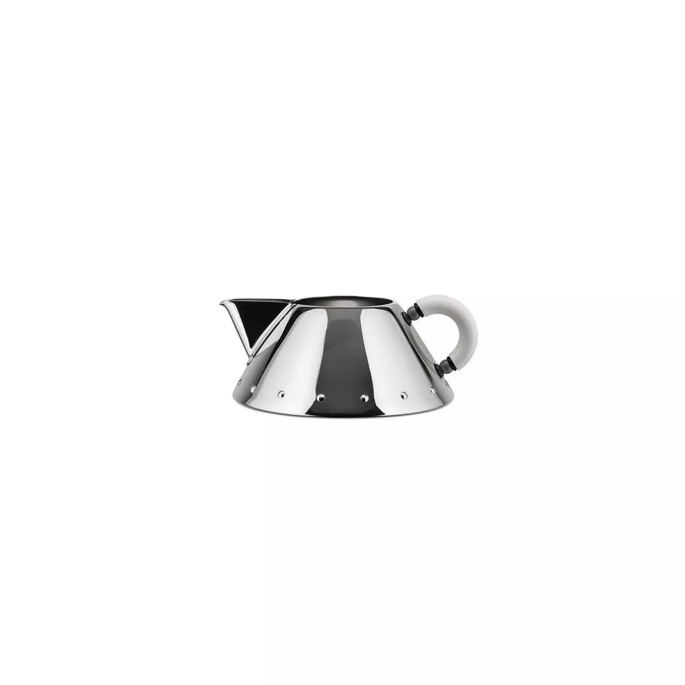 CREMIERA CON MANICO, 9096 - ALESSI Questa cremiera è uno dei primi progetti di una grande e fortunata famiglia di oggetti ideata per Alessi dall'architetto americano Michael Graves. Alla cremiera Graves ha applicato il suo personale codice visuale nel quale si fondono influssi che vanno dall’Art Déco alla Pop Art, fino al linguaggio dei cartoons. Un approccio che ha trasformato la cremiera 9096 in una vera e propria icona del design internazionale degli anni '80 e ‘90. Materiale: acciaio inox 18/10 dimensioni: h. 4.5 cm diametro: 10.5 cm capacità: 20 cl