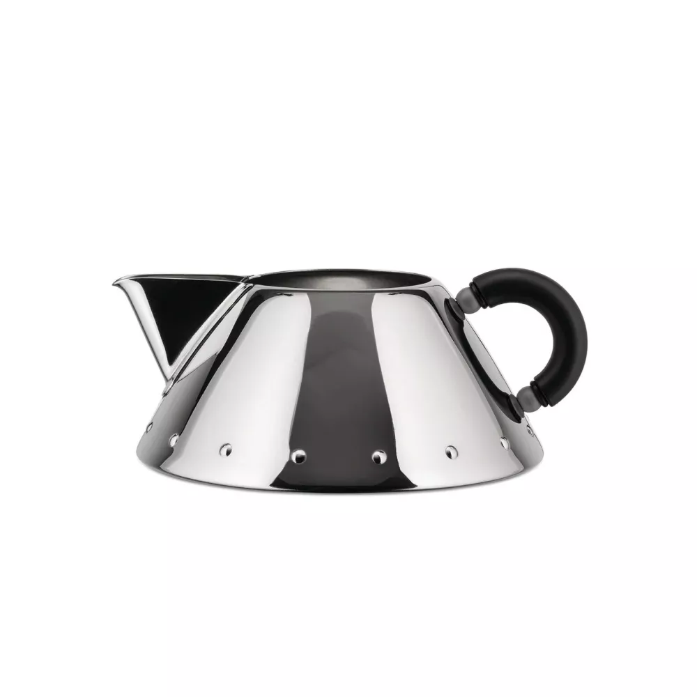 CREMIERA CON MANICO, 9096 - ALESSI Questa cremiera è uno dei primi progetti di una grande e fortunata famiglia di oggetti ideata per Alessi dall'architetto americano Michael Graves. Alla cremiera Graves ha applicato il suo personale codice visuale nel quale si fondono influssi che vanno dall’Art Déco alla Pop Art, fino al linguaggio dei cartoons. Un approccio che ha trasformato la cremiera 9096 in una vera e propria icona del design internazionale degli anni '80 e ‘90. Materiale: acciaio inox 18/10 dimensioni: h. 4.5 cm diametro: 10.5 cm capacità: 20 cl