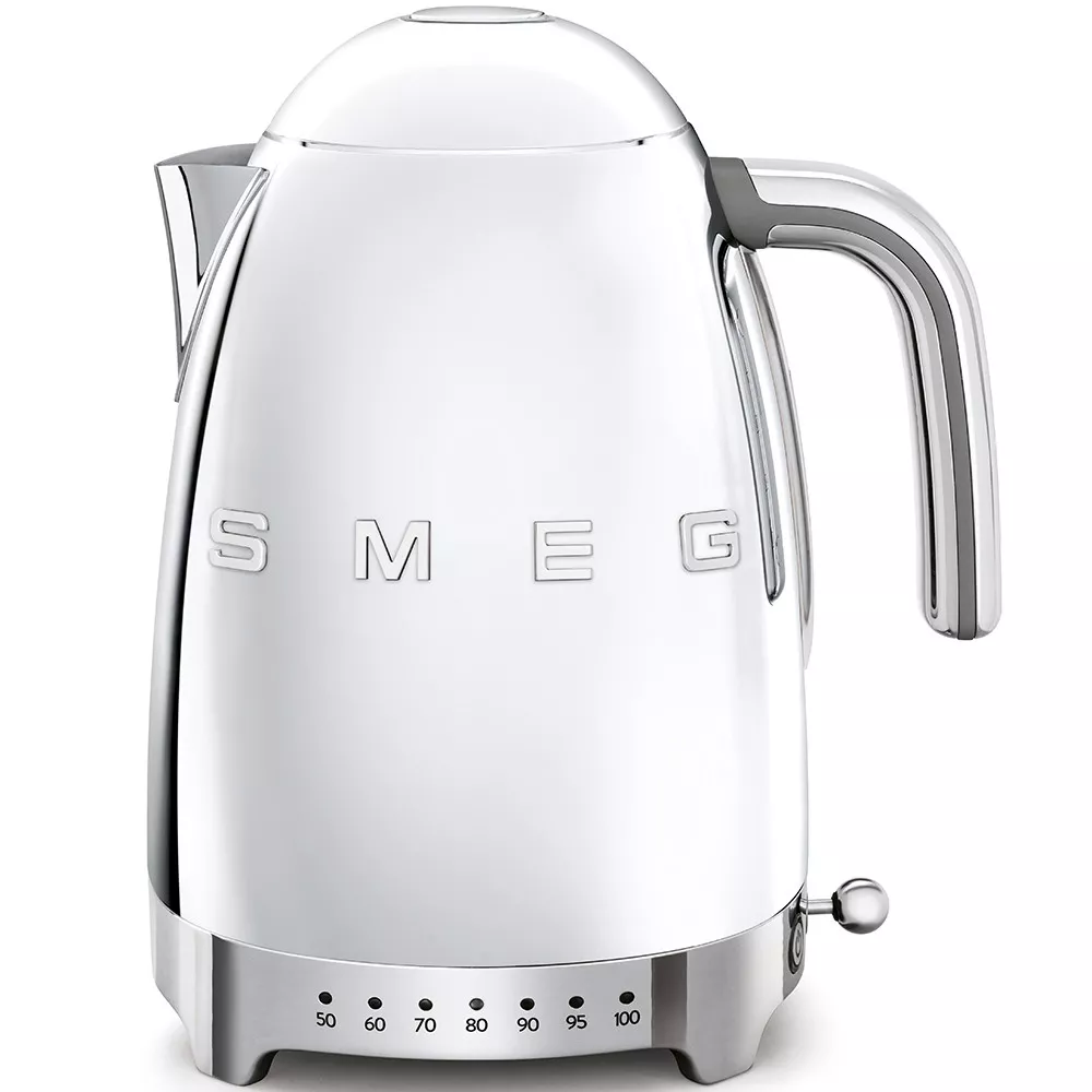 Il Bollitore Elettrico KLF04 della collezione 50s Style di Smeg unisce estetica retrò e tecnologia evoluta per un’esperienza su misura. Con una capacità di 1.7 L, pari a 7 tazze, permette di selezionare la temperatura desiderata tra 50 c e 100 c grazie a sette livelli preimpostati, ideali per tè, tisane e infusioni pregiate. Il corpo in acciaio inox lucido dona eleganza alla cucina, mentre la funzione mantenimento temperatura, il sistema Soft Opening e lo spegnimento automatico garantiscono praticità e sicurezza. Un piccolo elettrodomestico iconico che coniuga performance e stile, perfetto anche come idea regalo di design.