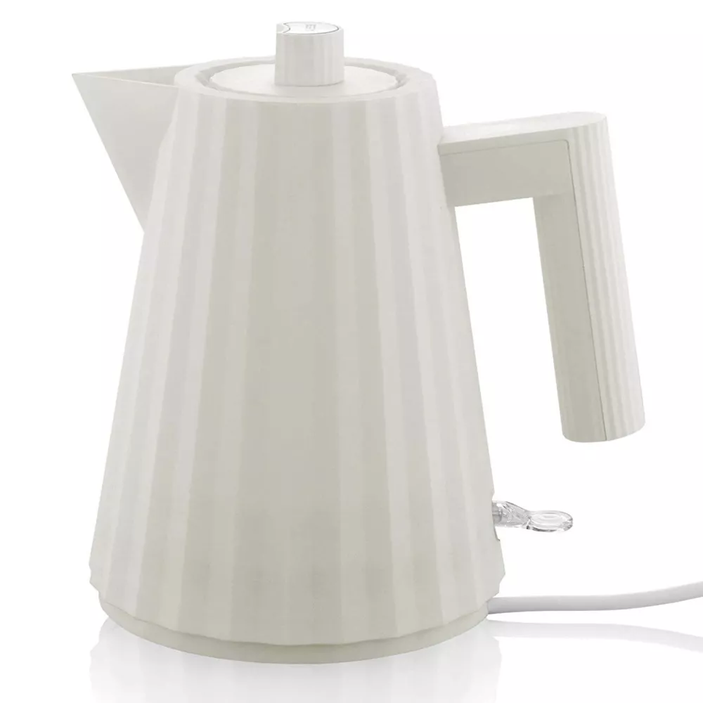 BOLLITORE ELETTRICO PLISSE, MDL06 - ALESSI Creato da Michele De Lucchi, il bollitore Plissé fonde funzionalità con un design plastico e affascinante, rivelando l'esperienza da architetto dell'autore e le sue inclinazioni verso l'artigianato e la scultura. Proprio come un tessuto che prende forma attraverso pieghe fitte, questo bollitore evoca l'immagine di un raffinato abito da sartoria, divenendo un prezioso oggetto da esibire con orgoglio su un piano della cucina. Spina europea Potenza: 2400W Materiali: Resina termoplastica