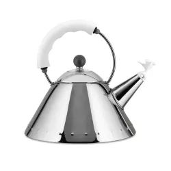 BOLLITORE CON FISCHIETTO A UCCELLINO, 9093 - ALESSI La bollitore 9093 con fischietto a forma di uccellino è uno dei prodotti più venduti di Alessi in tutto il mondo. Il design di questo bollitore, creato da Michael Graves nel 1985, fonde influenze sofisticate dell'arte europea, del Pop americano e riferimenti alle culture precolombiane. È questo linguaggio visivo altamente personale di Graves che spiega lo straordinario successo che il bollitore ha goduto fin dall'anno della sua produzione. È un oggetto colto ed elegante, ma allo stesso tempo giocoso e divertente: quando l'acqua bolle, l'uccellino canta, portando inevitabilmente un sorriso sul tuo volto. Codice: 9093 Dimensioni: H 22,5 cm x D 22 cm Capacità: 200 cl Pratico per la preparazione di tè e infusi alle erbe.