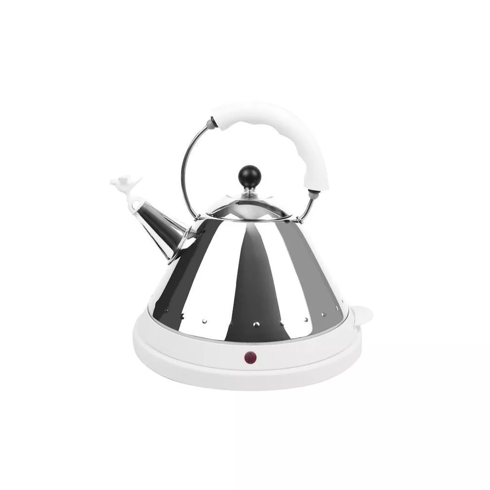 Alessi Bollitore elettrico - MG32 Codice: MG32 W Designer Michael Graves Bollitore elettrico cordless in acciaio inossidabile 18/10 lucido con manico e base in resina termoplastica, bianco. Spina europea. Versione elettrica del celeberrimo bollitore con l’uccellino, un grande successo a partire dal 1985, rappresenta per Alessi il punto di incontro tra il grande design e i metodi di produzione su vasta scala, incontro ricercato con ostinazione da Michael Graves, applicando il suo personale codice visuale che fonde influssi dall’Art Deco alla Pop Art fino al linguaggio dei cartoons. Diametro (cm): 25.50 Altezza (cm): 27.00 Content (cl/oz): 150.00