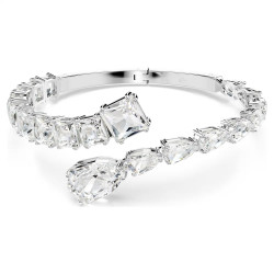 Collezione: Sublima Lunghezza: S - 6.1 cm | M - 6.5 cm | L - 6.9 cm Ampiezza: 1.5 cm Diametri interni: S - 5.4 x 4.8 cm | M - 5.6 x 5.2 cm | L - 6.2 x 5.6 cm Distanza apertura: 6.5 cm Materiale: Cristalli, Placcatura rodio Colore: Bianco Tipo di fermaglio: A ribalta