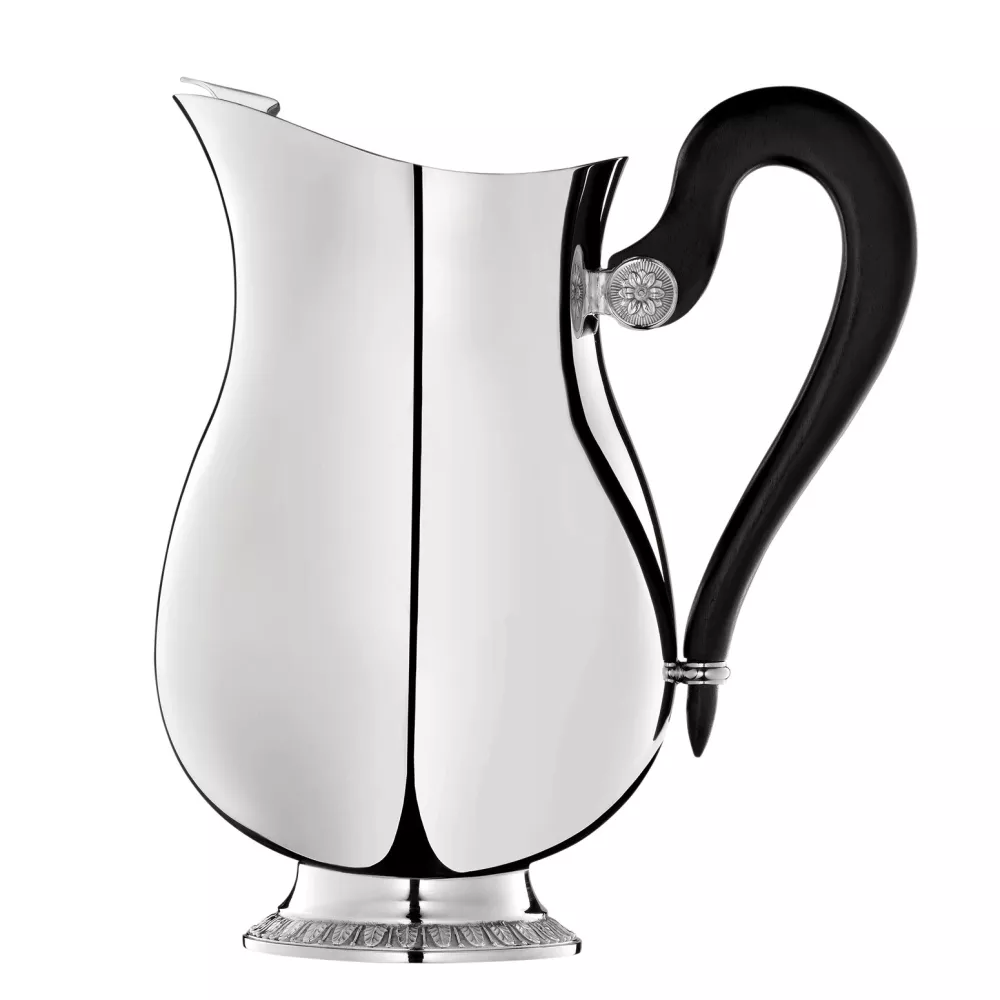Aggiungi un tocco di raffinatezza alla tua tavola con la brocca per acqua placcata in argento della collezione Malmaison di Christofle. Il suo design elegante, arricchito da un manico in legno di ebano, richiama il prestigioso stile Empire, caratterizzato da fregi di palme e foglie di loto che evocano simmetria e regalità. Il nome della collezione rende omaggio al "Château de la Malmaison", la residenza prediletta di Napoleone Bonaparte e dell'Imperatrice Giuseppina.