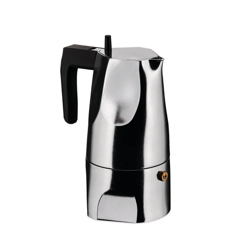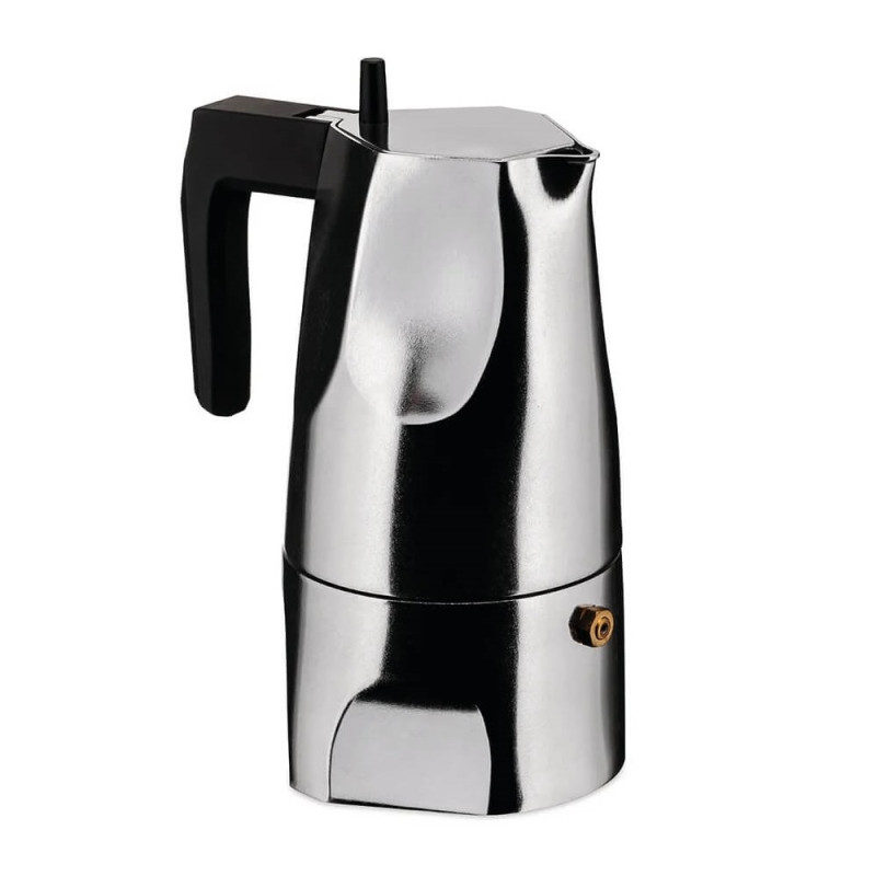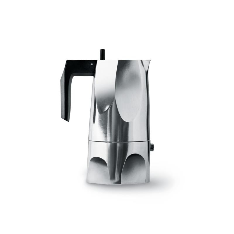 CAFFETTIERA MOKA, OSSIDIANA MT18 - ALESSI Attento alla capacità narrativa degli oggetti, l’architetto siciliano Mario Trimarchi ha disegnato la caffettiera espresso “Ossidiana”. Un progetto che, come gli altri dell’autore, nasce da ricordi e frammenti di immagini raccontati attraverso la forma di un oggetto. “Ossidiana” racchiude in sé la memoria delle sfaccettature della moka tradizionale e quelle dell’omonima pietra vulcanica. Caffettiera espresso in fusione di alluminio Manico e pomolo in resina termoplastica
