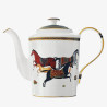 Hermes Cheval D'Orient Caffettiera / Teiera Codice: 9818P In una steppa bianca di neve, tra ciuffi d'erba primaverili, galoppano dei cavalli. La loro cavalcata silenziosa proviene da un'epoca che ignora il tempo.Galoppano su una coltre punteggiata di porpora, azzurro intenso e oro, provenienti da quell'Oriente di sogno illustrato dalle miniature persiane. Capacità: 120 cl Materiale: porcellana Per tutti i prodotti Hermés non disponibili al momento dell'acquisto, si prega di considerare tempistiche di consegna dai 6 fino ad oltre i 12 mesi.