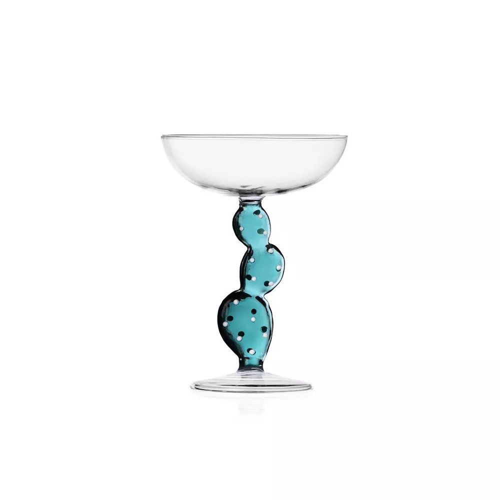COPPA CHAMPAGNE CACTUS, PETROLIO DESERT PLANTS, 09352332 - ICHENDORF MILANO La coppa di champagne in vetro trasparente appartenente alla collezione Desert Plants, ideata dalla designer Alessandra Baldereschi, è stata prodotta da Ichendorf utilizzando vetro borosilicato soffiato, resistente ai liquidi caldi e lavabile in lavastoviglie. Grazie alla sua speciale lavorazione, presenta una bassa dilatazione termica che ne garantisce la durata e la resistenza agli sbalzi di temperatura. La Ichendorf Milano, un'azienda leader nella lavorazione del vetro dal 1920, si contraddistingue per la produzione di prodotti di alta qualità, design moderno ed essenziale e resistenza. Misure: Ø 11,5 x H 16 cm Colore: trasparente / azzurro petrolio Materiale: Borosilicato Fatto a mano e modellato a lume Lavaggio: in lavastoviglie con ciclo delicato 40°